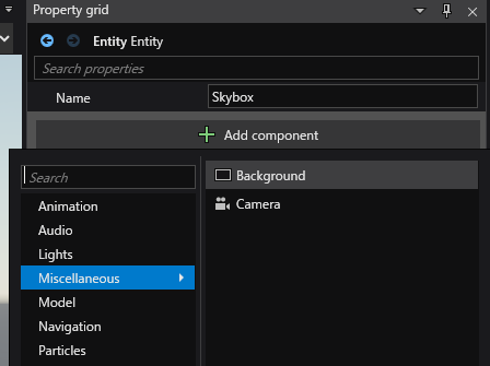 必要な数のエンティティに背景コンポーネントを追加することができます。例えば、実行時にスカイボックスを切り替えたい場合などに、複数の背景を含めることができます。